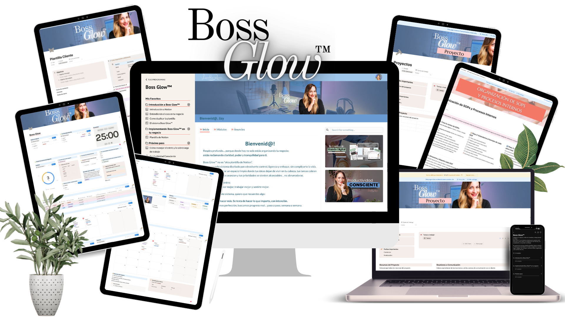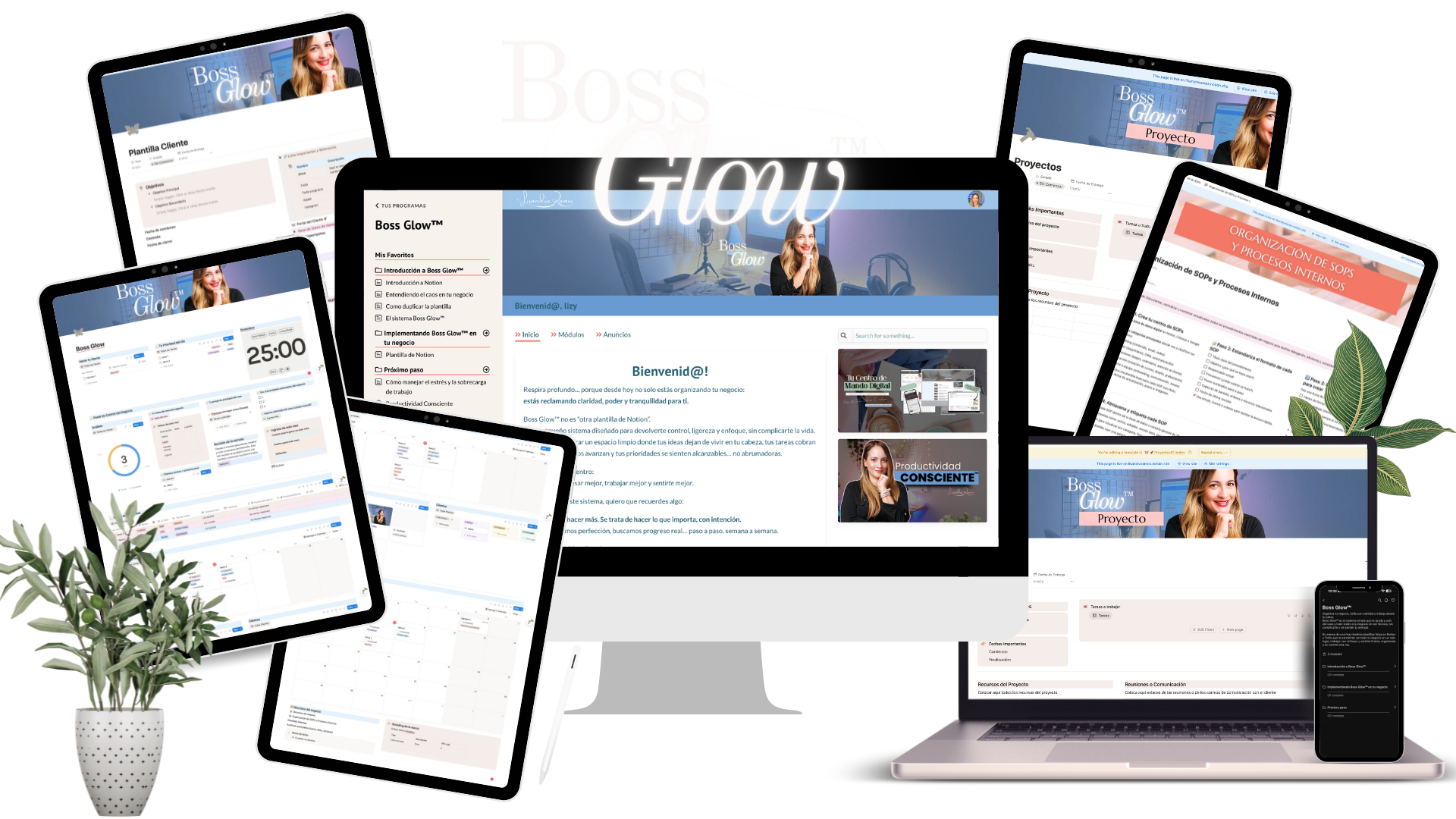 El sistema Boss Glow™ es la forma más simple, efectiva y rápida de organizar tu negocio digital sin complicarte.