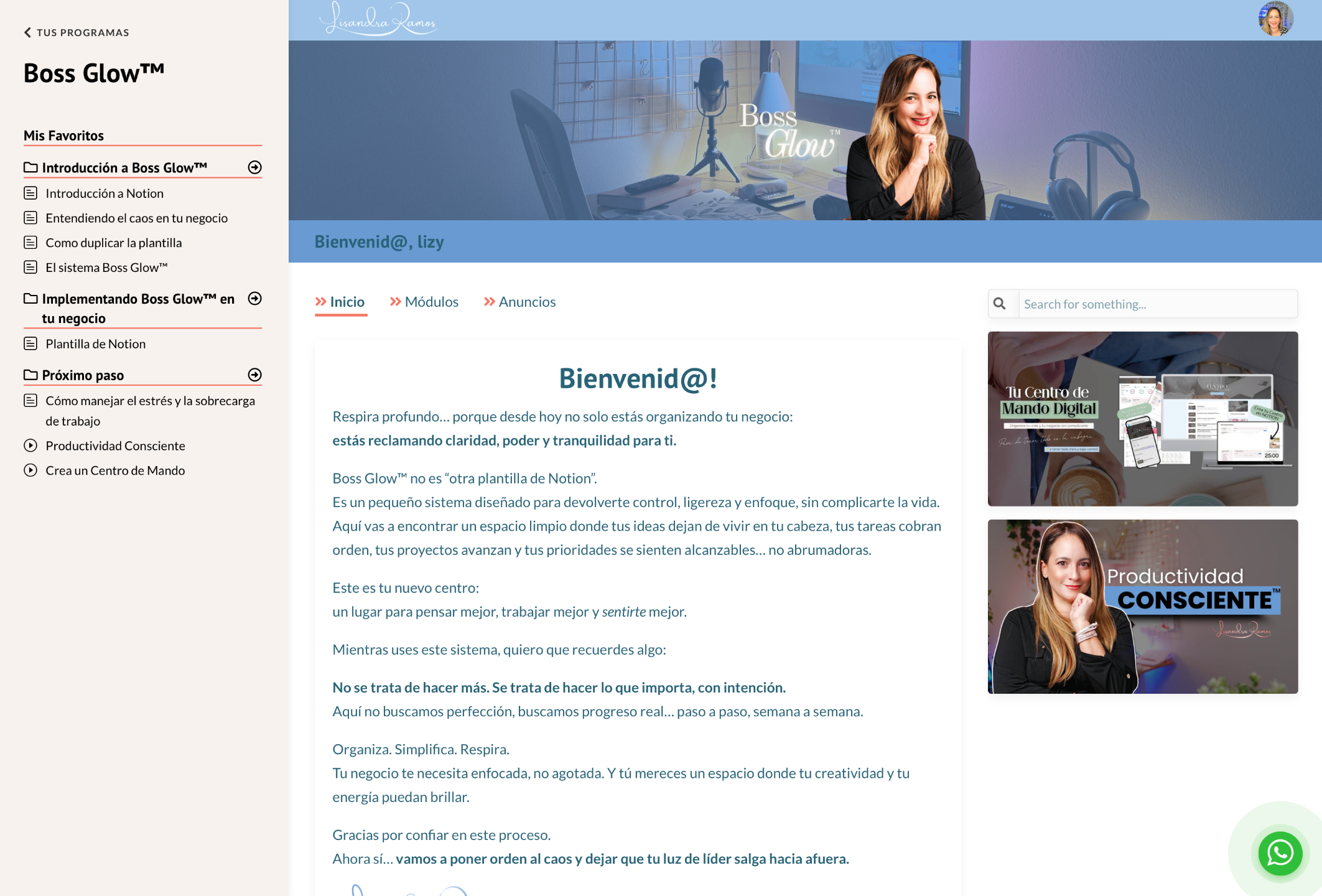 Tendrás videos cortos y guías claras donde te enseño paso a paso cómo usar Boss Glow™ sin complicarte.